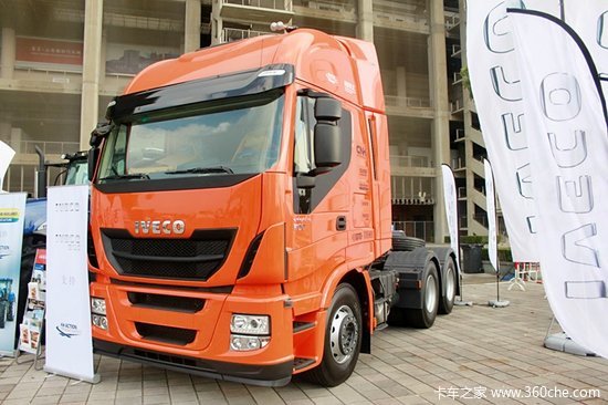 这台依维柯STRALIS 4X2牵引车是专程从北京开到上海,参加此次世界房车锦标赛活动的,橙色的靓丽外形首先吸引住了我们的目光。