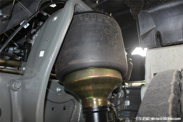 除了动力系统大升级,C7H所配置的全空气悬架系统也是彰显其高端重卡身份的一大利器,前后悬架均使用空气气囊,在借鉴MAN技术的基础上又进行了优化提升,采用德国WABCO ECAS控制系统,通过操作遥控器,实现空气悬架的高度调节、提升桥的升降。全气囊结构使车身高度进一步降低,提升运输量。