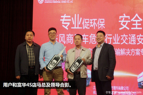 在现场还举行了简单的交车仪式,用户结果象征财富的钥匙以后和富华4S点马总以及四川商代处郭总合影。