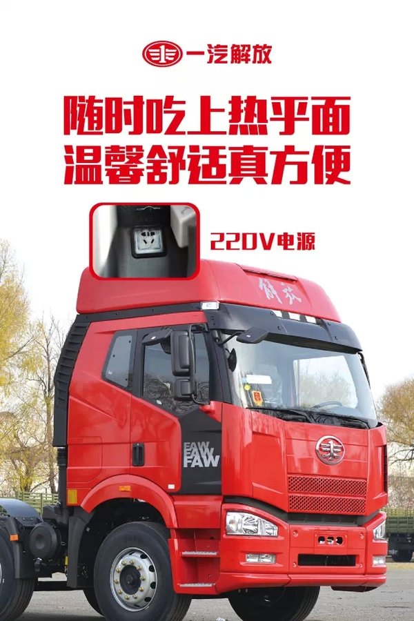 北方地区运煤市场竞争激烈,运价低,装卸等待时间长,冬季寒冷。卡车用户都有三个心愿,一是车辆能够加0#柴油,二是停车等待及发动机熄火时用户能在车辆中取暖和车内休息,三是能使用车内电源烧开水吃热面,从而降低使用成本。为此解放开发了J6P 6X2 11L北方版牵引车,在安全、可靠、节油的基础上,具有更省钱、更可靠、更舒适、更适应的突出特点。