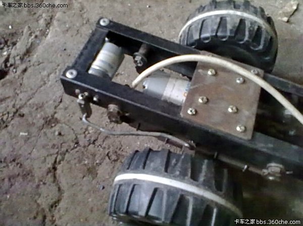 用角铁做电机座,装到底盘上,大电机负责行走动力,小电机负责转向。