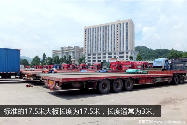 据了解,17.5米大板是作为特种车辆诞生的,在制定国家GB1589规定的时候,为了方便运输13米挂车运输不了的不可拆卸的货物,也不必使用专业的大件运输车,简化流程,从而诞生了17.5米大板。