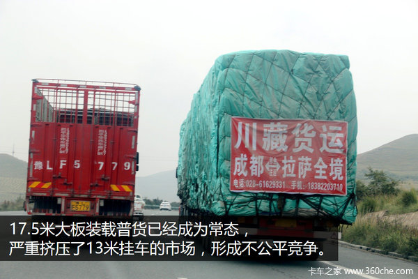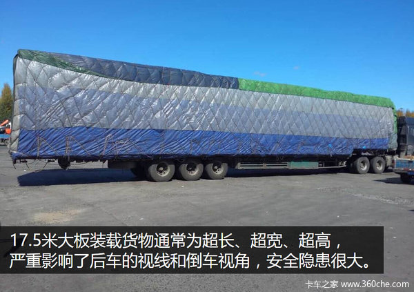 17.5米大板装载普通货物这一行为本来就是违法行为,同时这样的行为已经严重的威胁到了整个市场的行情、运费、行车安全等等。