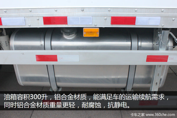 油箱容积为300升,可以满足车辆中短途运输续航需求,同时铝合金材质重量更轻,耐腐蚀,抗静电。