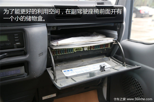 为了能更好的利用空间,在副驾驶座椅前面还开有一个小的储物盒,但是打开后可以发现这其实是在保险盒上隔开的空间。而在驾驶座椅右侧也只安装了制动手刹和变速挡杆。