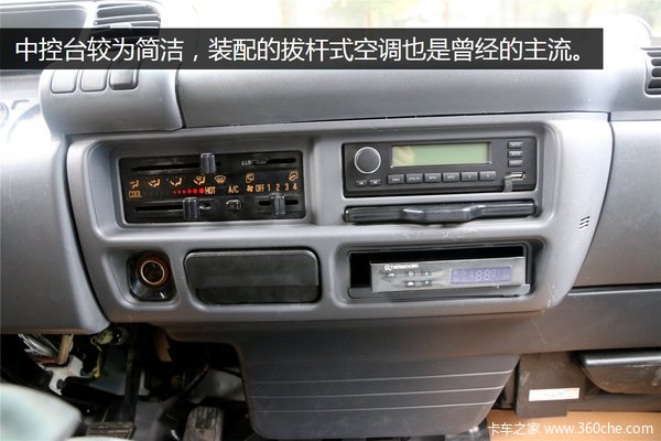 中控台较为简洁,配备有收音机、点烟器、烟灰盒等。装配的拔杆式空调也是比较经典的款式,不过现在很多车型上都已经换成更方便的旋钮式或其它更好的了。