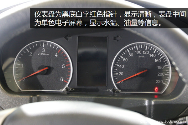 拓陆者E3在内饰细节上与拓陆者S有一定差别。整体为深色色调,点缀有镀铬装饰板,整体做工不错。方向盘沿用高配车型模板,设有多功能键,便于操作。仪表盘为黑底白字红色指针,显示清晰,表盘中间为单色电子屏幕,显示水温、油量等信息。