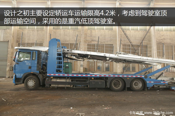 这款车型为劳尔与中国重汽2014年下半年联手打造,是为了配合交通部GB1589法规修订过程中装配的中置轴轿运车样板车。完成装配的一年多,它的主要功能是全国巡展,为中国市场导入中置轴轿运车概念,并未正式上路运营,因此到目前为止行驶公里还不到1万公里。