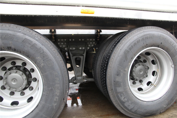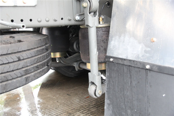 前桥采用少片簧结构,而后桥则是全气囊悬架,不仅大幅降低车辆自重,还能提升驾驶舒适性。同时采用气囊悬架可调节车身高度,快速卸货。后桥为MCY11后桥,配有轮间差速锁及ASR驱动防滑系统,速比4.63,装有横向稳定杆。