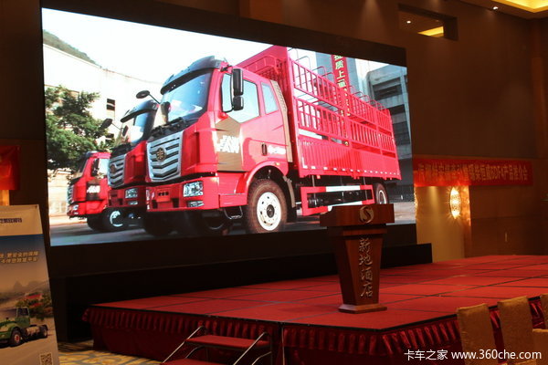 来卡车之家App【卡车之家 原创】2016年4月20日上午,南京天吉汽车销售服务有限责任公司在南京市新地酒店举办一汽解放柳特公司2016新产品投放仪式。南京苏安车业董事长王靖,南京市道路运输协会会长刘克俭,一汽柳特江苏省经理韦胜,一汽锡柴江苏省区销售经理刘宁,一汽柳特总经理,党委书记张春林出席了仪式。