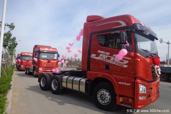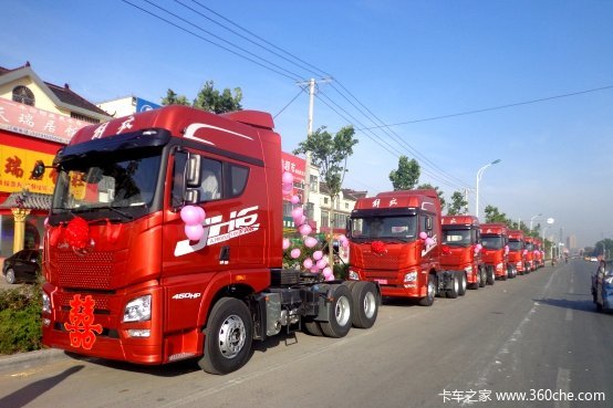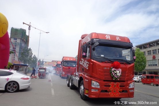 8辆JH6富贵红牵引车整装待发 “解放迎亲队”走起啦。