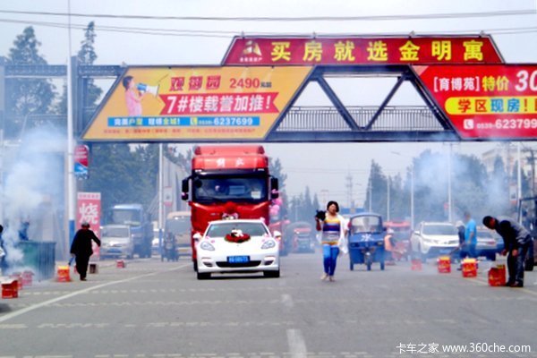 来卡车之家App【卡车之家 原创】作为热爱卡车的卡车人,卡友们拿卡车当婚车的不在少数。而5月由于特殊的日子,结婚的人特别多。这不,运输重镇山东临沂就有一位卡友在采用解放JH6的车队当做婚车。