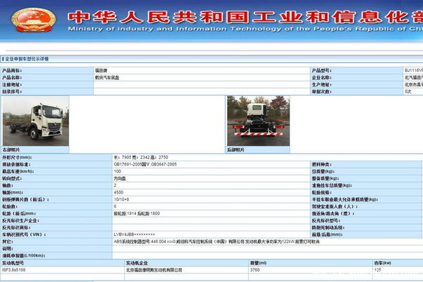 发动机功率为132Kw,180马力。5150mm轴距对应的上装长度在6.8米左右。ABS系统由克诺尔提供。