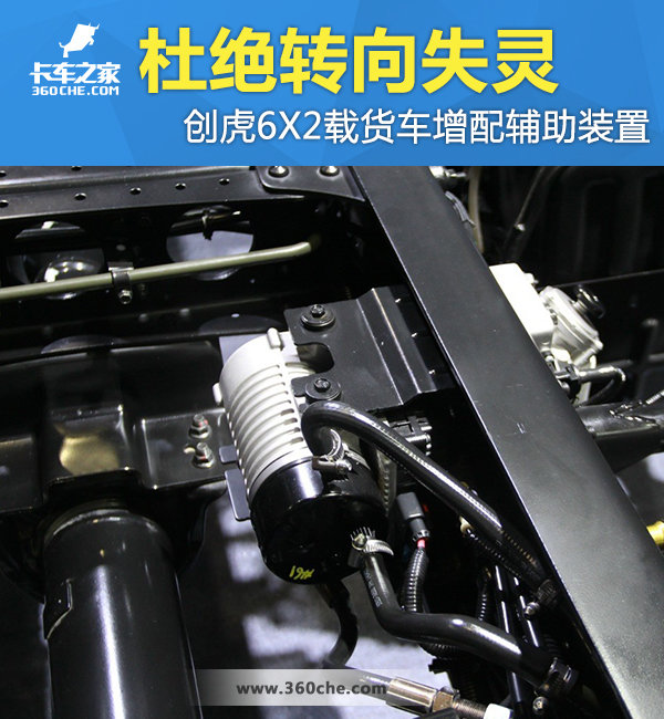 前些时日,在走访四川现代的时候了解到一款创虎6X2的载货车现目前装配有紧急转向助力泵,正好解决了上面提到方向锁死的问题。