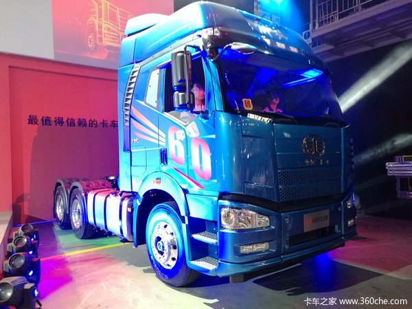 这款解放60周年纪念版卡车采用蓝色涂装设计,中间金色的鹰眼标识,辨识度很高,并且采用了铝合金车圈、整体式挡泥板设计。