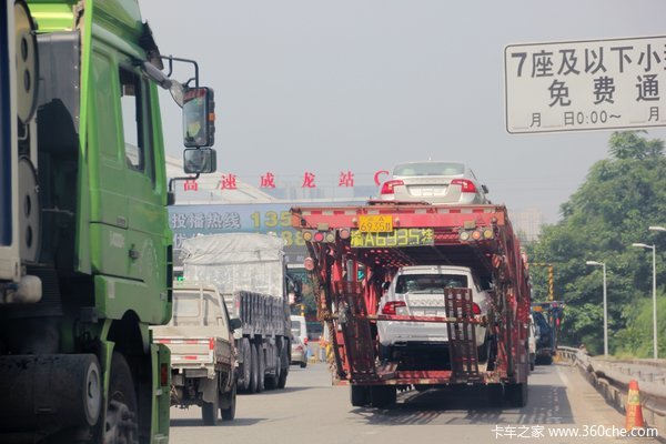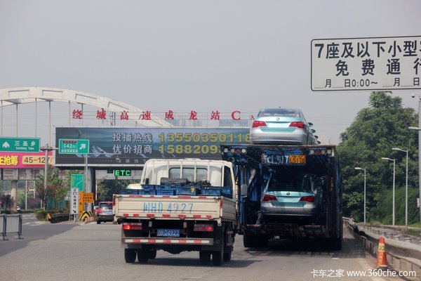 在笔者随后的时间里,在成龙收费站路口没有发现一辆双排轿运车通过,全部是单排轿运车由此驶入高速公路。几乎可以肯定的说,双排轿运车在近期是不能由此驶入高速公路,该政策已然落地。