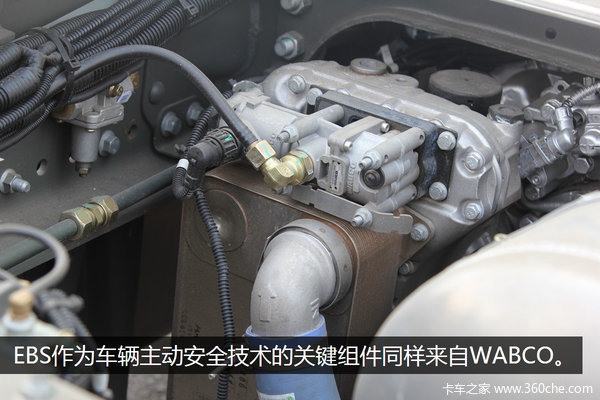 EBS(电子制动系统)同样来自WABCO,它是车辆主动安全技术领域的关键组件,没有EBS的话,自动紧急制动系统(AEB)、自适应巡航控制系统(ACC)、车身稳定性控制系统(ESC)、坡道辅助系统(HSA)都将无法实现。