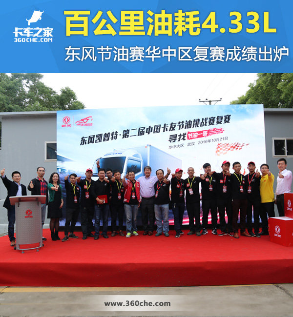 来卡车之家App【卡车之家 原创】2016年10月21日,第二届“寻找节油一哥,东风凯普特·中国卡友节油挑战赛”华中赛区复赛在东西湖区举行,东风汽车股份有限公司、广西玉柴机器股份有限公司的领导们以及来自襄阳、郑州、南阳、阜阳、宜昌、商丘、武汉等赛区13位预选赛优秀选手一起参与了此次活动。
