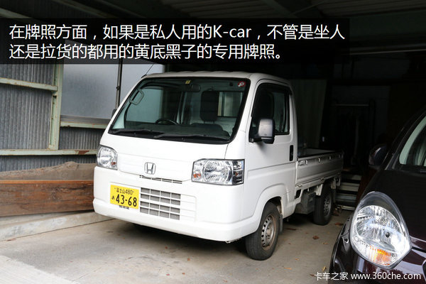 在牌照方面,如果是私人用的K-car,不管是坐人还是拉货的都用的黄底黑字的专用牌照。