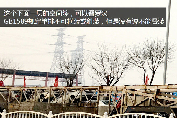 下面一层的有些车可以采用叠罗汉的运输方式,GB1589规定单排不可横装或者斜装,但是没有说不能叠装。这位卡友合理利用空间思维,可谓是高手在民间。