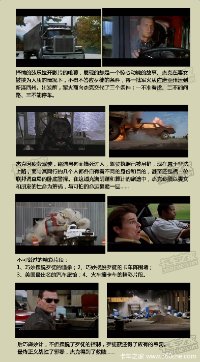 来卡车之家App【卡车之家 原创】之前,为大家盘点了几部经典喜剧电影《让你笑到肚子疼 盘点十大无尿点的喜剧》,同时找找童年回忆。在光怪陆离的电影世界里,谁都可以是主角。今天我们就来看一下以卡车为主要元素的独特类型片,在感官上带来的与传统剧情片不一样的快感和冲击力。