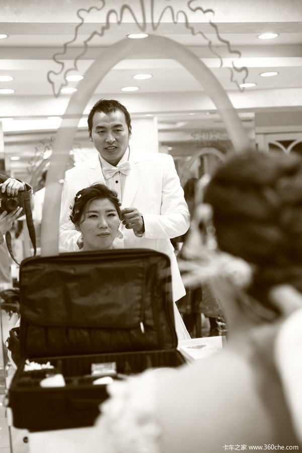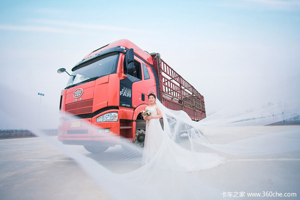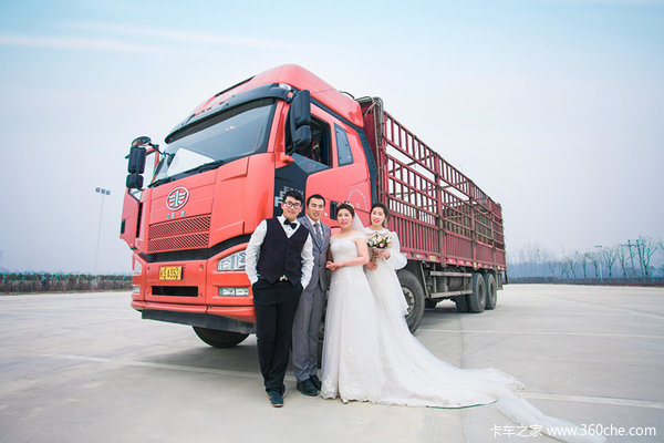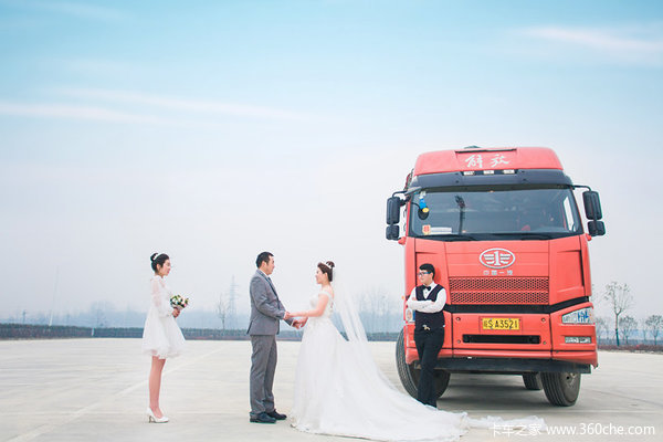 既然是卡车司机的的婚纱照,怎么能少的了卡车呢?卡友毛东亮强烈要求把自己的爱车解放J6加入婚纱照中。