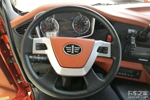 方向盘中部的喇叭按钮同样也采用了浅棕色,看起来要比之前的简单配色高大上很多,提升了不止一个档次。驾驶配有这个颜色内饰的J6牵引车行驶在宽阔的高速路上,打开音响播放一曲自己喜欢的音乐,想想都觉得惬意。