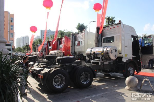 全新豪瀚J7B 6×4燃油车辆自重8.1吨,J7G 6×4燃油车辆自重8吨。同时,为了应对运煤市场的变化,中国重汽推出了J7G燃气车和T7H燃气车。这两款车匹配的是MT13发动机,是目前燃气车发动机马力最大的车型,百公里气耗29-32公斤。且J7G燃气车自重为8.8吨,T7H燃气车自重为9.3吨,非常具有市场竞争力。
