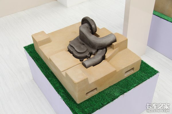在玉柴的展台上,我们看到了这样的发动机零部件模型。工作人员向我们介绍这其实是通过3D打印技术做出来的发动机零件砂型。利用这项技术,一个全套17吨的砂型从砂芯快制到铸件只需要30天的时间,发动机的研发周期可以从原来的8个月缩短至3个月,研发效率大幅提升,成本大幅下降。