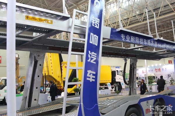 飞机板被取缔以后,中置轴逐渐成为轿运车市场的新宠,在展会上锣响展出了一款采用空气悬架的中置轴挂车。据介绍,这款中置轴长度为11米,是锣响挂车自主研发的产品,整车同样采用高强度钢,保证轿车在上下挂车的时候不会发生故障。