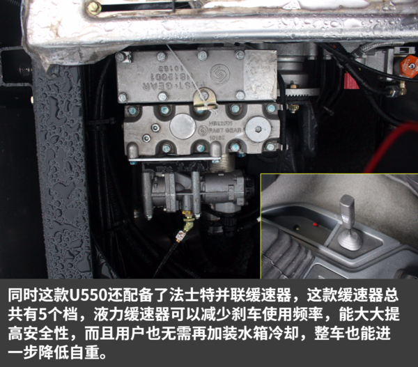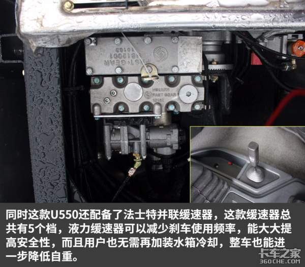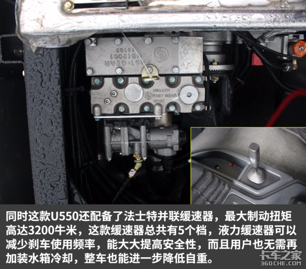 驾驶舒适度是选车的一方面,但是车辆的性能仍然是车主主要考虑的因素。该款车搭载的是玉柴13升发动机(排量12.939升)、法士特12JSDX240TA斜齿铝壳变速箱、富华后桥等配置,性能值得信赖。