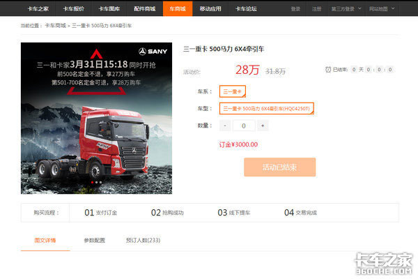 6、三一卡车APP和卡车之家为本次抢购合法渠道,两个渠道的抢购规则存在差异,请仔细阅读后再抢购。