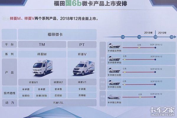 2018年9月30日,福田祥菱M系列等产品公告首次发布,成为国内首家获得国六公告的商用车企业。而这次在深圳率先上市的是福田祥菱的M系列微卡产品,搭载了东安DAM15KL的1.5L汽油发动机,通过升级优化发动机以及使用TWC+GPR的后处理路线,使该车的排放达到了国VI-b标准,这应该是深圳首款正式开售的国六车型。