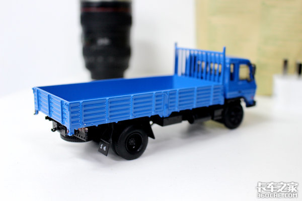 这款模型是经过1:43比例缩小的,看车厢栏板上连接合页的竖条,基本可以知道这款车模是以最经典的6.2米东风EQ153为原型的。