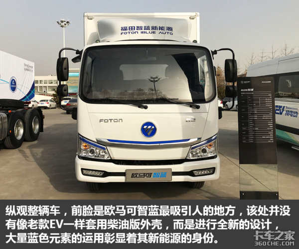 来卡车之家App【卡车之家 原创】提到福田的轻卡,相信大家并不陌生,该品牌旗下的奥铃和欧马可等车型已是当今国内畅销轻卡的代名词。然而今天我们要说的这款车并不是一台普通的福田轻卡,它来自于福田智蓝。福田智蓝是福田汽车在今年10月份投资16.1亿元成立的新公司,目的则是专门进行新能源汽车相关技术的研发以及新车型的生产。