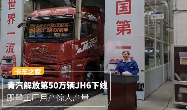 来卡车之家App【卡车之家 原创】2019年3月30日,青汽解放即墨工厂第50万辆车正式下线,并且该车也是青汽公司月产第2万辆车,这台解放JH6标志着即墨工厂月产2万台的超高产能,同时也说明了市场对于解放青汽的产品认可。