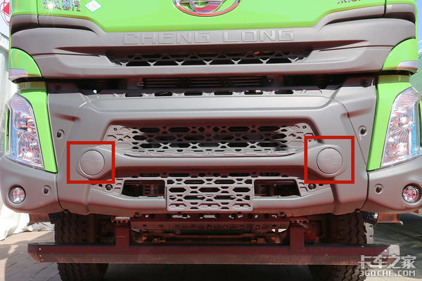 在正下方,设有了两个隐藏式托勾,在发生特殊情况时,可以将塑料盖板撬开,里面就是供拖车用的托勾。