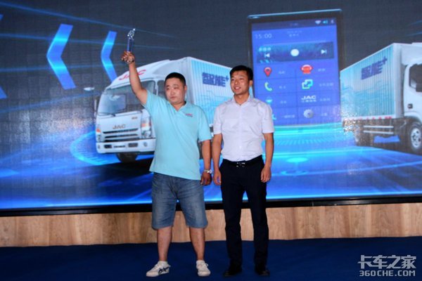 来自天津的卡车司机吴师傅接过了“特约测试员”的奖杯。吴师傅开车6年多,在朋友的介绍下接触到江淮轻卡,从此就成为一名妥妥的江淮“铁粉”。