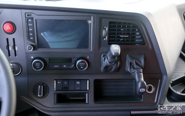 北奔V3ET天然气牵引车中控台的按键偏向驾驶员一侧,触手可及。10.25寸液晶屏幕是驾驶室最大的改变,可显示天气、地理信息、收音机、定位信息、USB状态、短信、蓝牙状态等。