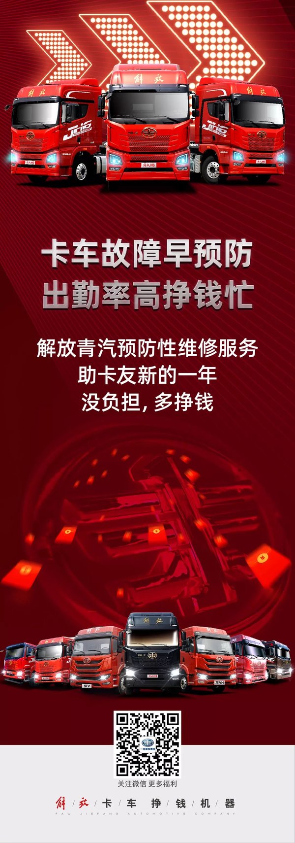 年关已过,市场旺季即将到来。在开工之前,解放青汽推出的暖心免费维保政策无疑成为了卡友们新年继续努力奋斗的助推剂,预祝卡友们在新年一年里,盆满钵满,出入平安。(文/蔡仕琪)