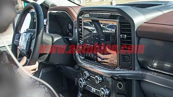 近日,海外媒体拍摄到一张福特全新F-150伪装车内饰的中控台侧面谍照。从谍照来看,新车将会配备尺寸更大的中控液晶屏与全液晶仪表盘。