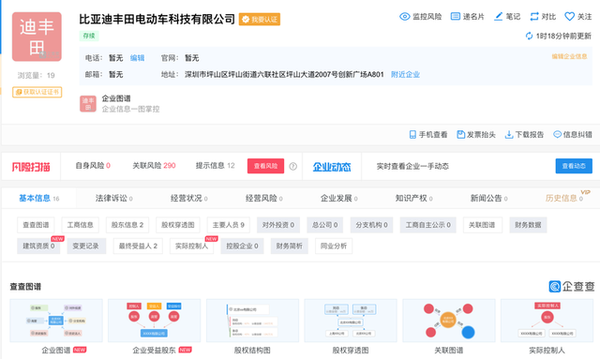 根据工商信息,该公司的法定代表人为比亚迪汽车院总体部经理赵炳根,董事长为丰田全球原动力总成内部公司总裁岸宏尚。公司注册资本为34500万元人民币,经营范围为纯电动车及其衍生车辆,包括纯电动汽车以及衍生车辆用零部件的设计、开发;纯电动汽车及其衍生车辆用零部件、组件以及总成的进出口,包括提供销售、售后服务以及相关咨询服务。