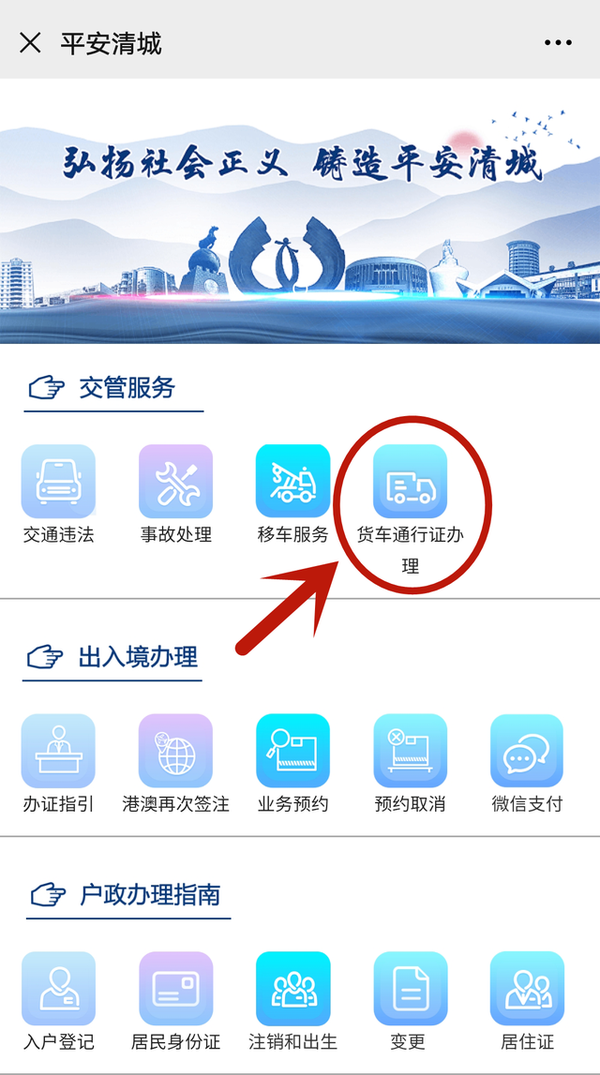 三、点击交管服务中的货车通行证办理即可进入办理页面