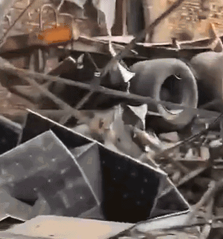 G15沈海高速(温岭大溪段)槽罐车爆炸造成路边多座房屋损毁严重,其中一幢几乎完全倒塌。损毁房屋多为四层建筑。现场救援还在进行中。天色渐黑,救援队员徒手救出一名受困人员。