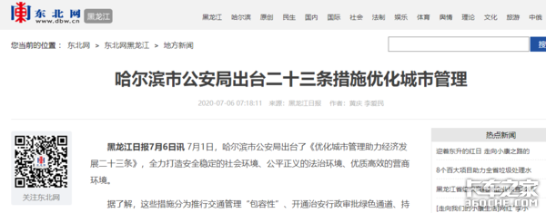 7月1日,哈尔滨市公安局出台了《优化城市管理助力经济发展二十三条》。其中对蓝牌轻卡的限行、禁停做出了明确指示。