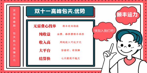 大家也知道,马上双十一电商节要来了,运力、司机成为各大快递公司争抢的重点,顺丰也不例外。从顺丰招募的信息来看,单周收入过万,不得不说是很大的吸引力,但是幸苦也是肯定的。