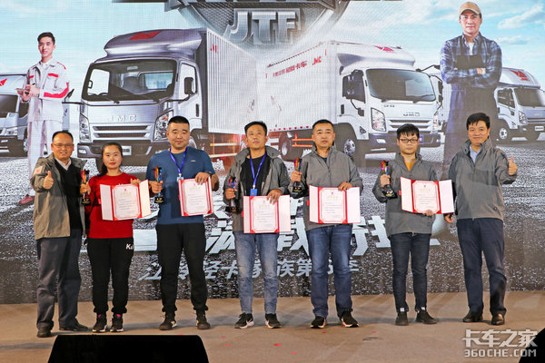 本届“江铃轻卡家族”活动共设有搬家运输类、五金建材运输类、冷链运输类、物流运输类、绿通果蔬运输类等五项大奖,每一项各设有一、二、三名,本届获奖者共计15名,此后江铃汽车相关领导为本届“江铃轻卡家族”获奖者进行颁奖。