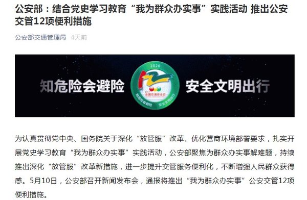 那么大家关心的实施时间是多久呢?发布会提到,公安交管12项便利措施自2021年6月1日起实施,其中4项试点措施将自6月1日起在部分地方先行先试,今年下半年再选择部分地方扩大试点,明年全面推行。