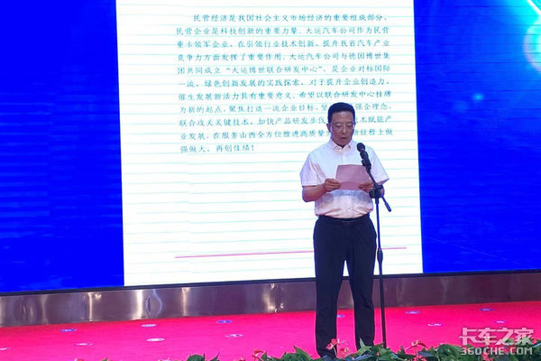 此次合作协议签约,暨联合研发中心挂牌仪式同样深受山西省市各级政府领导的高度重视和大力支持。山西省科技厅副厅长牛青山现场宣读了蓝佛安省长发来的贺信。蓝省长在贺信中指出:“大运汽车公司与德国博世集团共同成立“大运博世联合研发中心”,是企业对标国际一流、绿色创新发展的实践探索,对于提升企业创造力、催生发展新活力具有重要意义。”