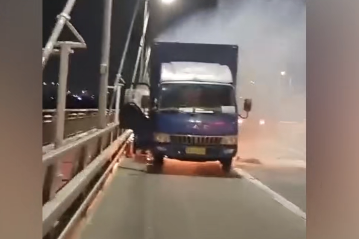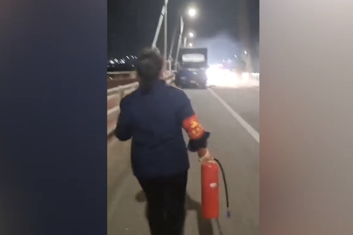 江苏南京,10月11日傍晚,一辆货车在长江二桥上起火,公交车驾驶员傅冬梅正好驾驶公交路过。